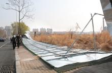 市民报告:营口大风“不服管” 绿栏“醉”风躺平